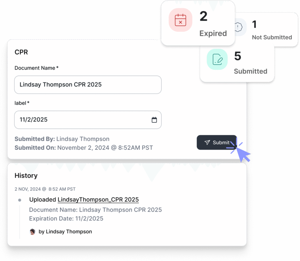 Collect, track, and store critical documents—like CPR certifications, insurance, and training qualifications—right inside NetGym.